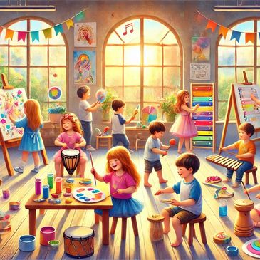 Aesthetic development encourages children to explore art and music, fostering their sense of beauty and expression. They experiment with elements like melody, rhythm, color, and texture using various media such as paint, clay, and watercolors. Integrated into the curriculum, art and music inspire imagination and allow children to express themselves freely.